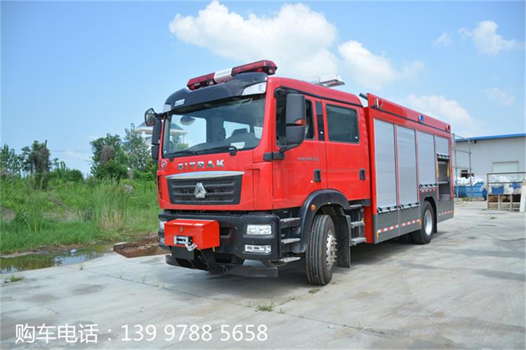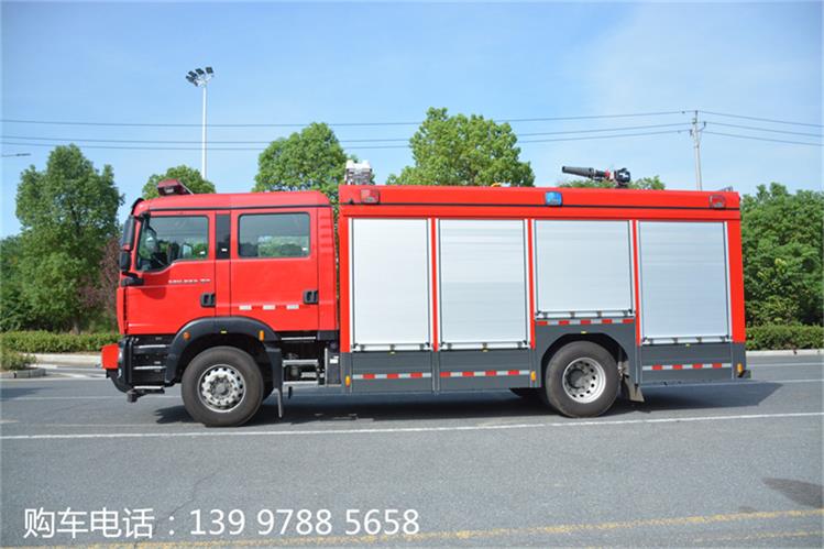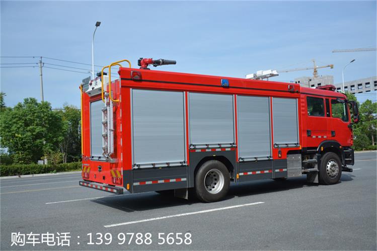 JDF5180GXFAP55/Z6壓縮空氣泡沫消防車由中國重汽汕德卡底加裝而成的;罐體總容積5.6立方,其中A類泡沫罐容積0.35立方,B類泡沫罐容只0.55立方,水罐容積4.7立方。