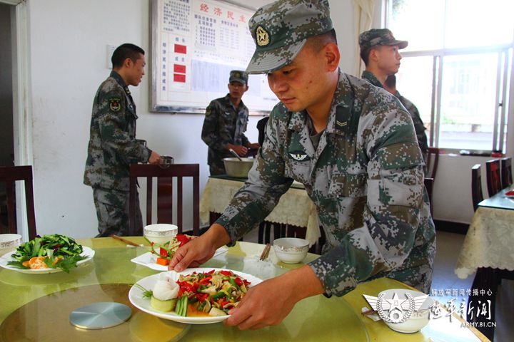 炊事班長裴曉鵬是一名高級廚師,也是此次集訓的教員。培訓期間,他和當地的名廚共同為學員們教授了多種菜品和面點的制作方法,還根據部隊所需,為駐扎在一線前哨排的炊事員對"菜品保養、凈化飲用山水、高原炊事"等實用方法進行授課,學員們更是全神貫注地投入到學習當中,虛心請教、刻苦學習,漸漸掌握了烹、炒、炸、燉等多種基本技術。